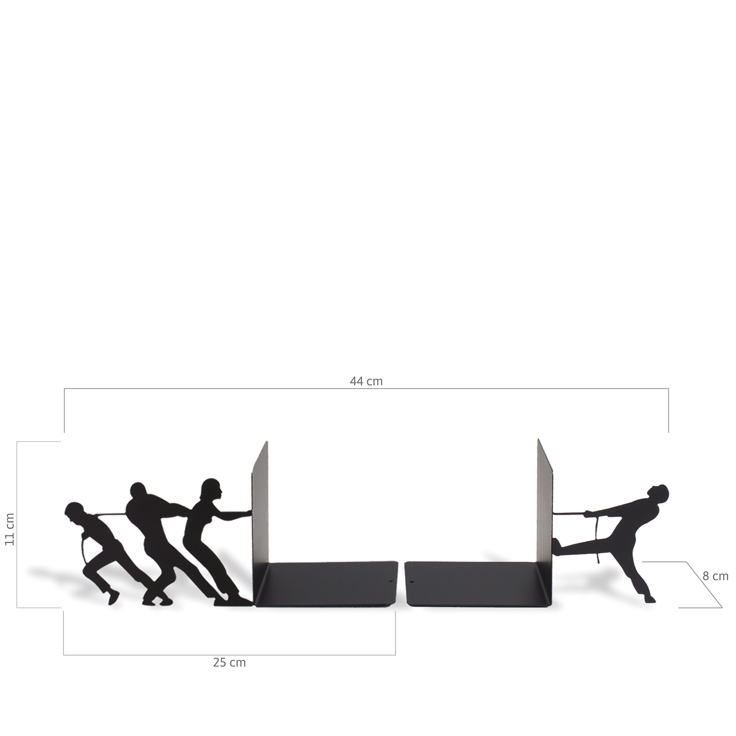 Para segurar e organizar livros decorando. A imagem do cabo de guerra ilustra um teste de força, persuasão, trabalho em equipe. Produto de aço recortado fabricado no Brasil. A Coleção Básica é atemporal, minimalista e neutra. Minimalismo é simplificar a vida eliminando os excessos e mantendo apenas o que é essencial, sem abrir mão da funcionalidade e da praticidade. Seja um incentivador, uma inspiração para as outras pessoas. Os livros não acompanham o produto.