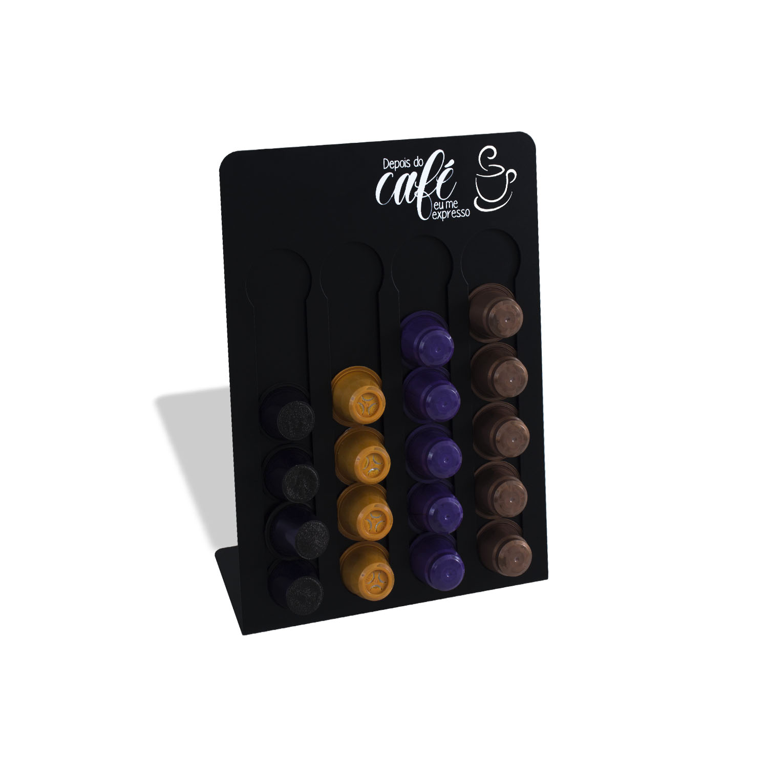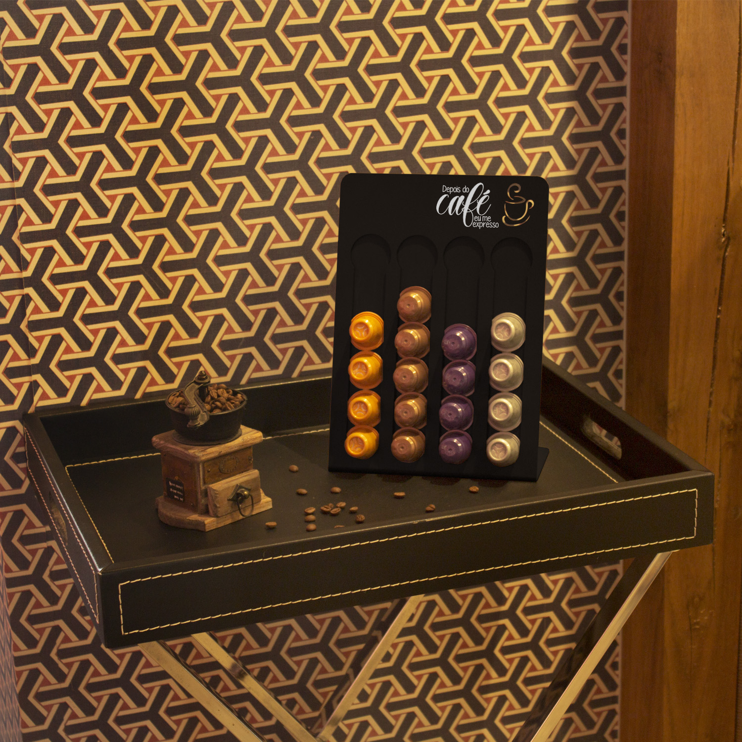 Você pode armazenar suas cápsulas de café, facilitando na hora do preparo e ao mesmo tempo decorar seu ambiente. Imagens meramente ilustrativas.