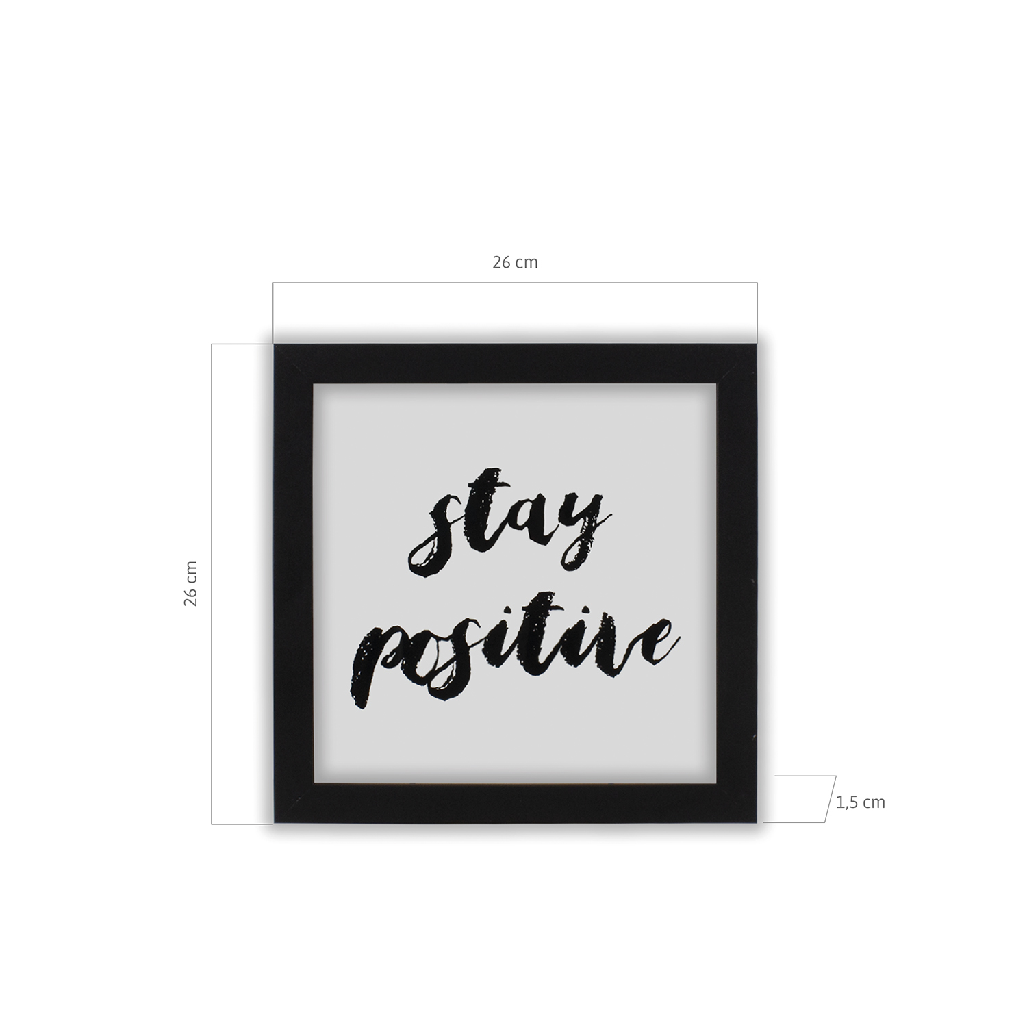 O Quadro Stay Positive foi desenvolvido com o intuito de trazer para dentro da sua casa a simplicidade e a beleza do pensamento positivo, lembrete diário que tudo vai dar certo se pensarmos positivo. Sem dúvida, é um ótimo presente para dar a alguém especial. Imagens meramente ilustrativas.