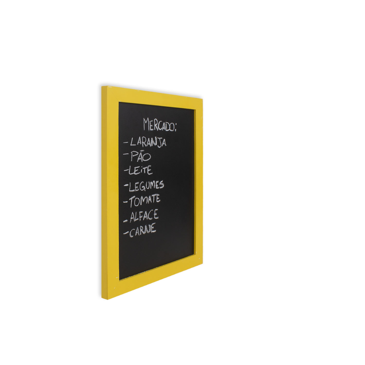 Conteúdo da Embalagem: 1 quadro, 2 giz, 2 parafusos com bucha para fixação em paredes de alvenaria.