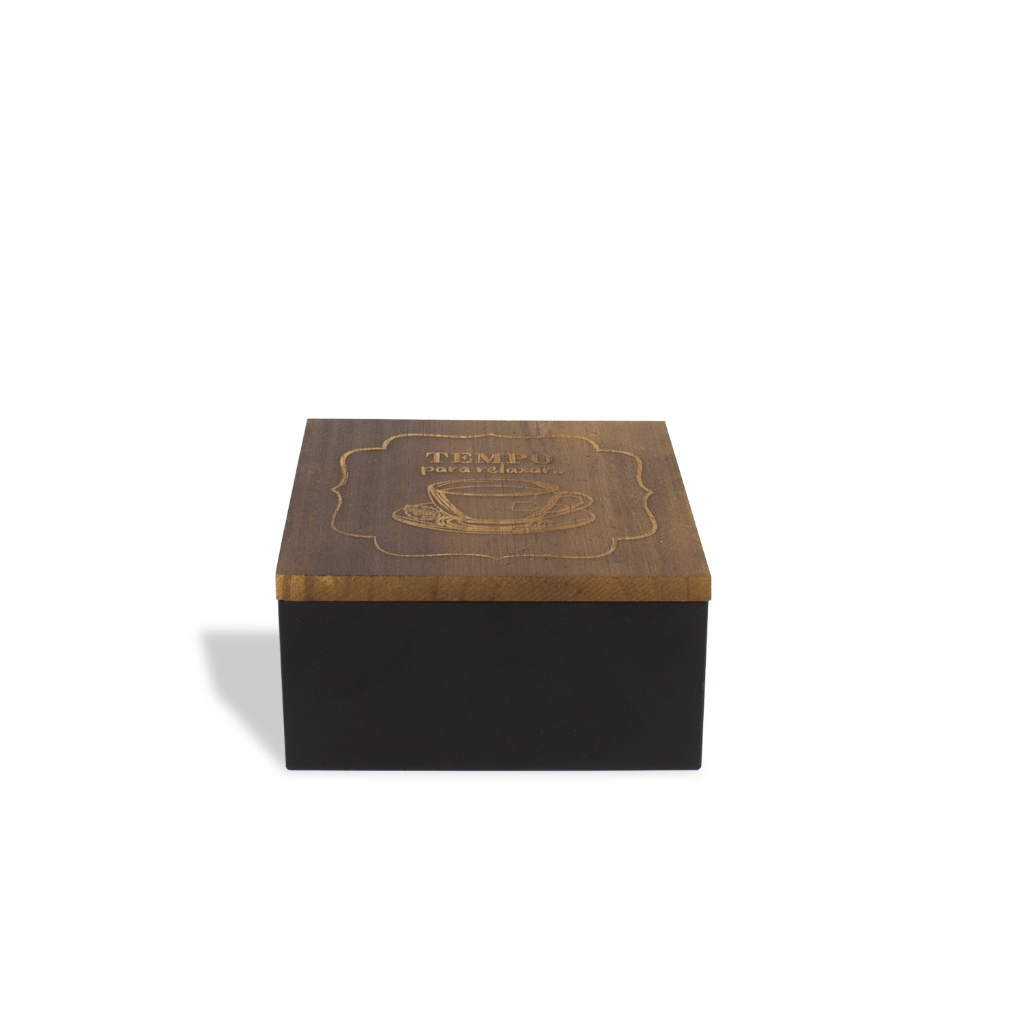 Tempo para relaxar... Para organizar sachês de chá e decorar. Caixa de aço com divisórias para melhor visualizar os sachês de chá, tampa de madeira certificada de reflorestamento, o que torna o produto único. Produto fabricado no Brasil. A Coleção Bistrô é inspirada nos aconchegantes e pequenos restaurantes franceses que servem uma refeição caseira, trabalham com comida, bebidas alcoólicas, chás e cafés, como um bar e restaurante. Sugestão de presente para a mãe, filha, irmã, avó, neta, tia, dinda, sogra, cunhada, amiga. Os sachês de chá não acompanham o produto.