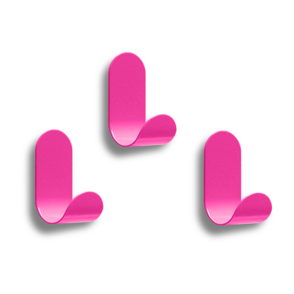 Os Super Ímãs Gancho são muito práticos para pendurar bijoux, lenços, chaves, medalhas, etc. Suportam até 300g cada. Dimensões das Peças: 2 x 2,6 x 4,1 cm cada Composição: Chapa de aço com pintura epóxi rosa. Disponível também nas cores branco, preto e lilás.